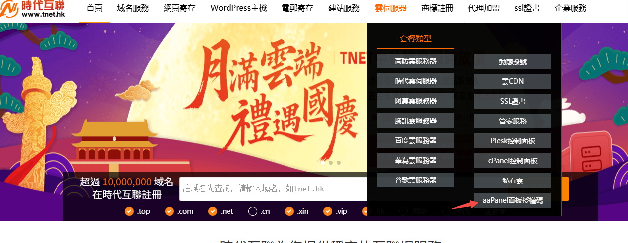 1、登录本站官网,鼠标移入云产品点击aaPanel面板