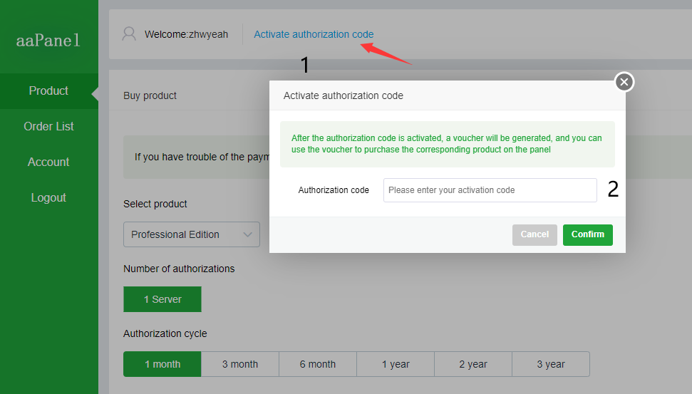 在本站购买产品的均为aaPanel面板的授权码(均低于官网价);购买完成后需前往aaPanel官网用户中心绑定授权码,再登录面板绑定aaPanel账号使用。