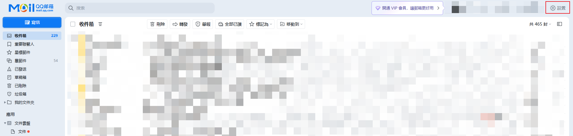 登陸QQ郵箱, 在頁面上方有一個「設置」按鈕,點擊一下。